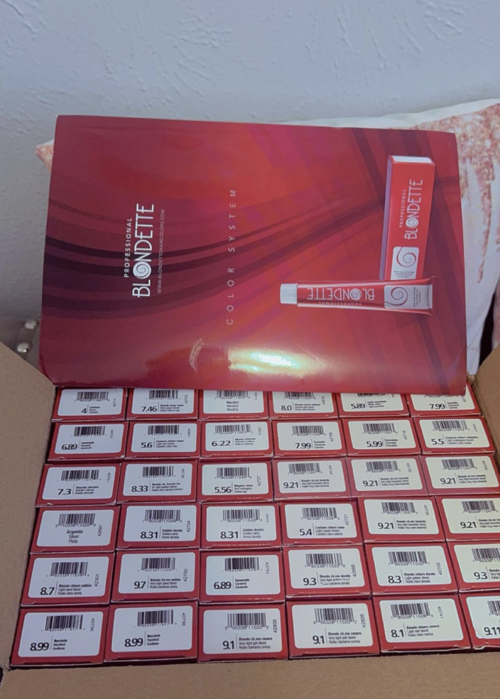 Blondette brings authentic Italian craftsmanship to professional hair color. Our permanent cream dyes offer 100% gray coverage, infused with keratin and ceramides for nourished, stronger hair. Made in Italy, our formulas deliver vibrant, long-lasting results with radiant shine. Available in single tubes, multi-packs (12 or 36), and custom color selections, Blondette includes rapid bleach with PLEX technology for up to 9 levels of lift. Perfect for salons and home colorists, backed by a 1-year warranty and 30-day returns.