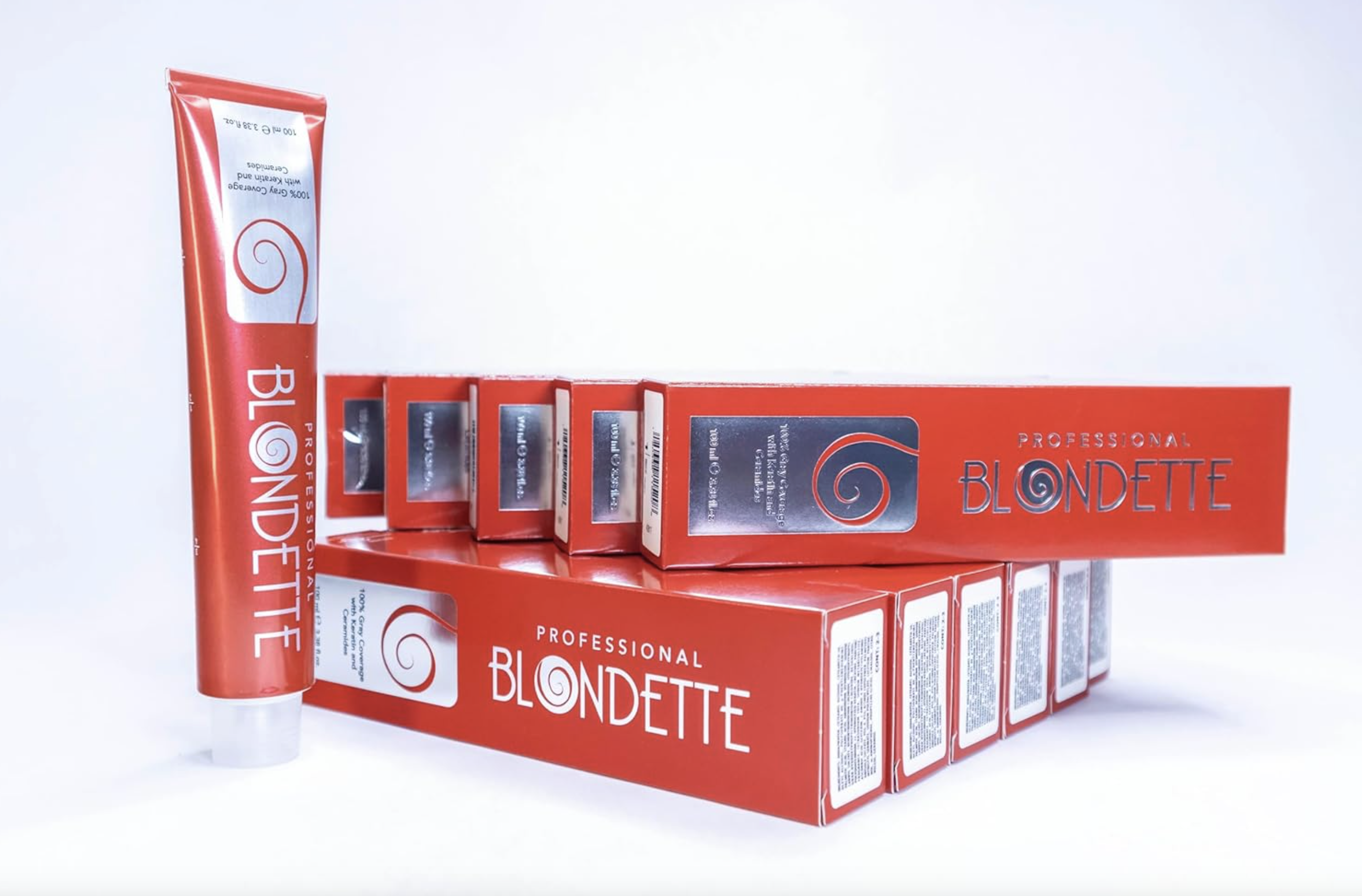 Blondette Professional Hair Color 12-Pack (100 ml each, 3.38 oz, 2.8 lbs total). Customize your shades, 100% gray coverage. Made in Italy. 1-year warranty.